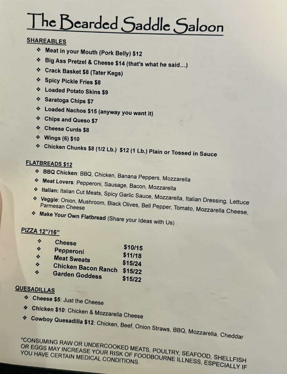 When you walk into The Bearded Saddle Saloon, you're greeted by more than just great food-it's an experience. Nestled at 1435 Trenton Oxford Rd in Oxford, OH, this spot offers a cozy, welcoming vibe, perfect for enjoying a hearty meal with friends or family. Whether you're craving a juicy burger, a flavorful salad, or one of their signature drinks, the The Bearded Saddle Saloon Menu has something to satisfy every taste. Their dishes are made from fresh ingredients, and there's always a special that keeps the menu exciting.